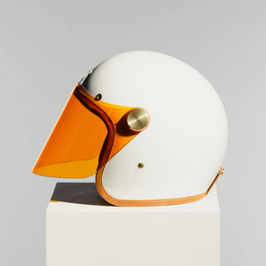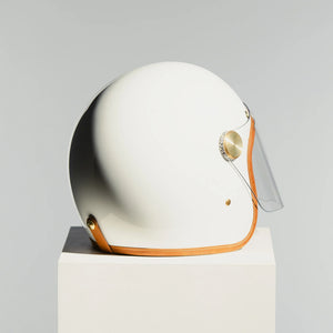 A striking evolution of timeless design, the Knight White Full Face Helmet is a modern tribute to vintage motorsport aesthetics. Featuring a gloss white automotive-grade shell, natural brown calf leather trim, and premium brass hardware, it’s a bold statement for riders who demand both refined style and uncompromising safety.