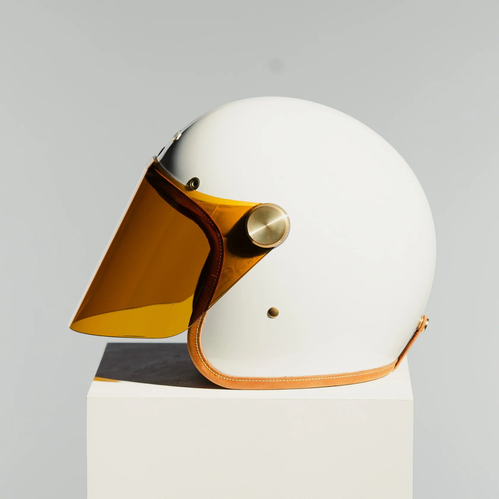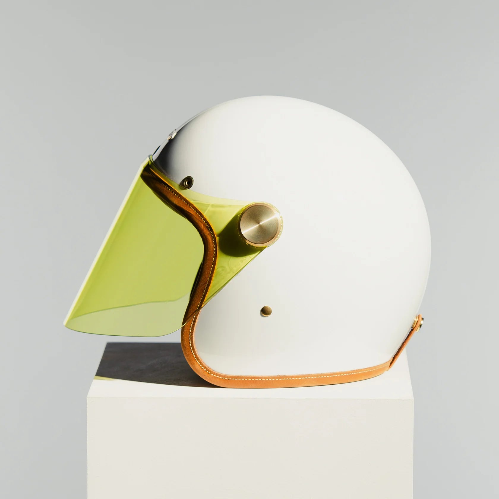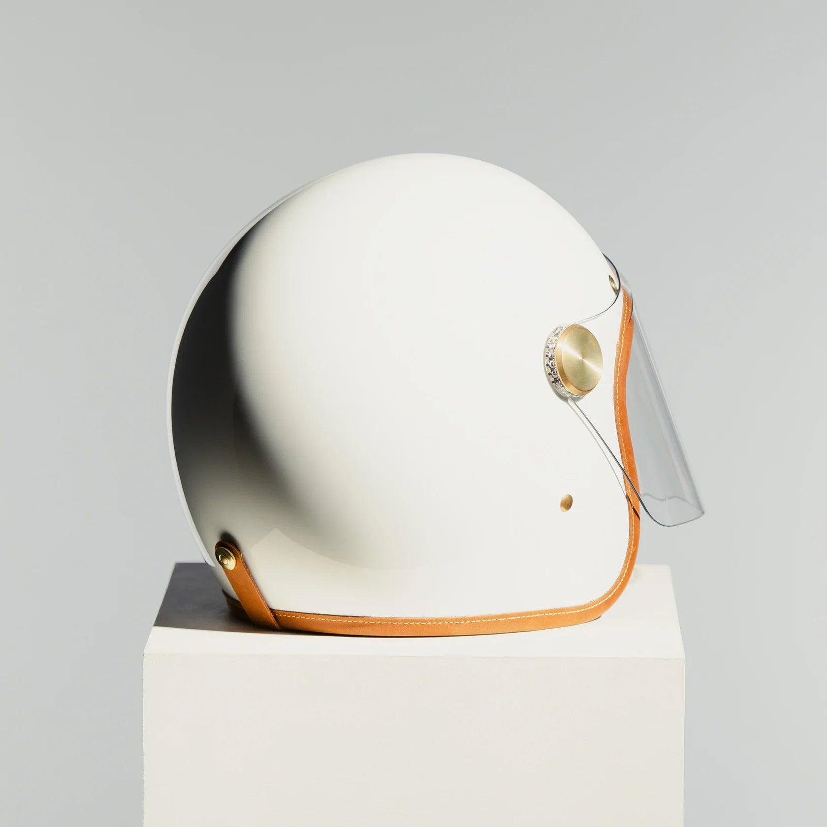 The composite fibre shell, made from fibreglass and carbon fibre, ensures strength without bulk, while the handcrafted 2mm clear thermoformed visor,ECE-approved and made in Belgium, delivers clarity and protection with artisan precision. Internally, the helmet is lined with Hed Armour 360° cushioning and Merlin anti-bacterial fabric, wrapped in natural calf leather for breathable comfort and luxury feel.
