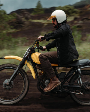 Forget stiff, skinny fit blue denim. The AA CE-certified Carpenter Pant redefines protective wear. Combining the hardwearing edge of riveted workwear with sleek, technical fibres, it’s built for comfort, crafted for character, and ready for the road.